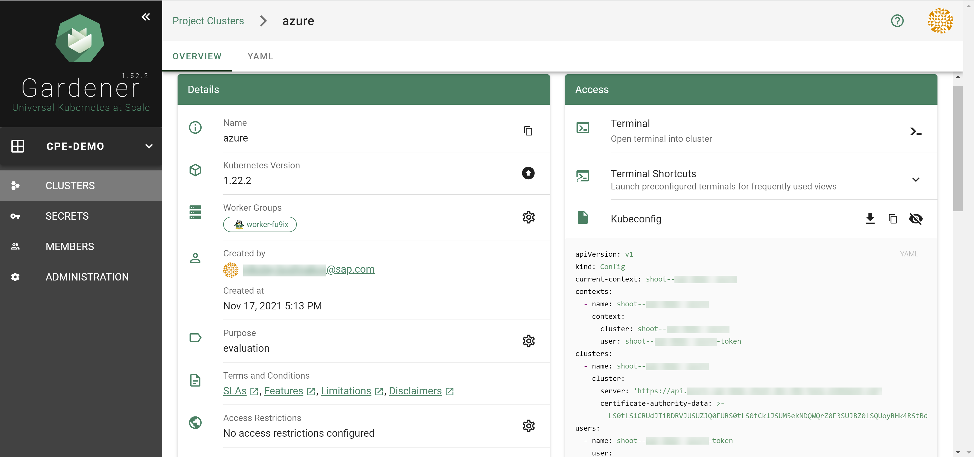 After completing the steps in this tutorial, you will be able to see and download the kubeconfig of your cluster.