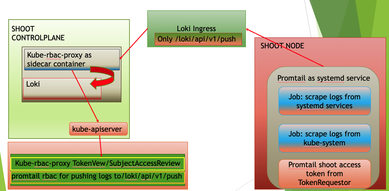 The logging stack is extended to scrape logs from the systemd services of each shoots' nodes and from all Gardener components in the shoot kube-system namespace. These logs are exposed only to the Gardener operators.