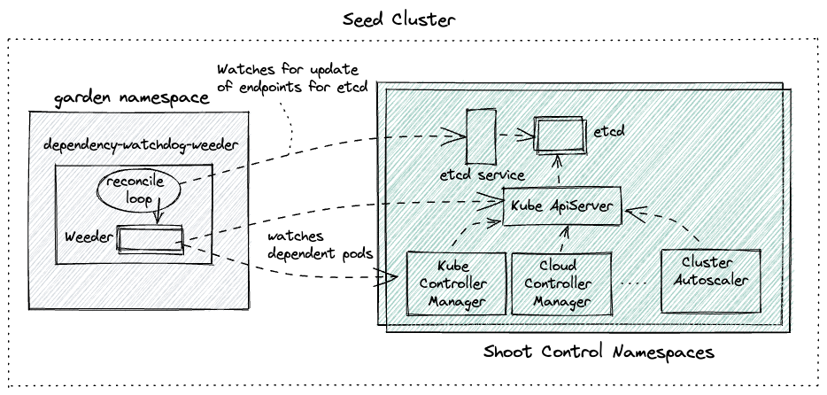 t=0-> all etcd pods go downt=10-> kube-api-server pods transition to CrashLoopBackOfft=100-> all etcd pods recover togethert=101-> Weeder seesUpdateevent foretcd-main-clientendpoints resourcet=102-> go routine created to keep watch on kube-api-server podst=103-> Since kube-api-server pods are still in CrashLoopBackOff, weeder deletes the pods to accelerate the recovery.t=104-> new kube-api-server pod created by replica-set controller in kube-controller-manager