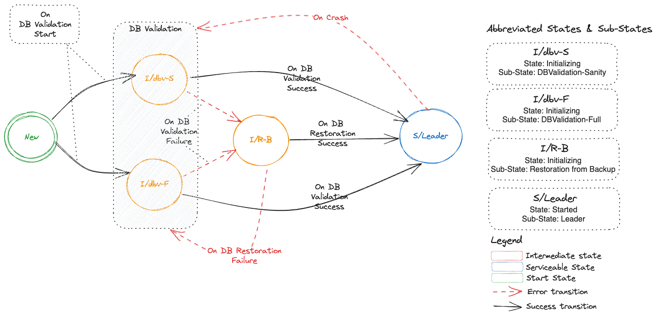 DetectedPreviousUncleanExit | New | Started (Leader) | Started (Follower) | Initializing (DBValidationFull) |